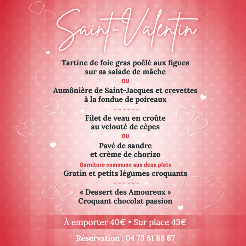 Brasserie Boisvallon – Menu Saint-Valentin